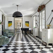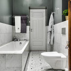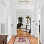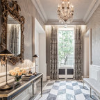 Bild på en stor vintage hall, med vita väggar och marmorgolv — Houzz