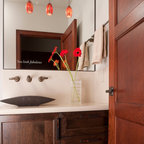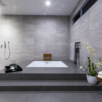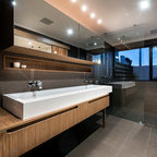 This bathroom looks amazing...the light mimics the plants..good attention to detail and scale..and color contrast