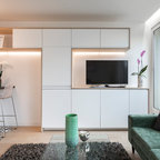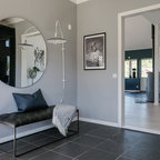love the entryway, the white walls and floors. little too minimalistic for my taste, great basis though