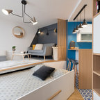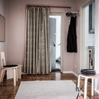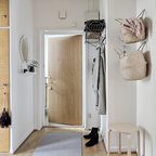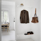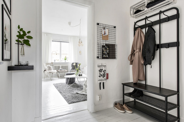 Idéer för att renovera en mellanstor skandinavisk entré, med vita väggar, målat trägolv och vitt golv — Houzz