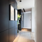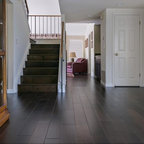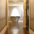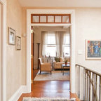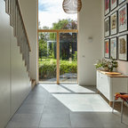 Idéer för vintage hallar, med grå väggar och ljust trägolv — Houzz