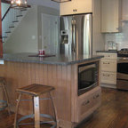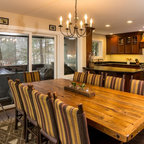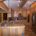 Like the layout, but long table instead of second island with chairs. would like chairs on island