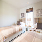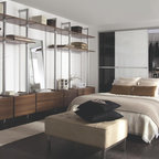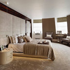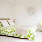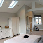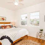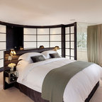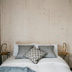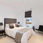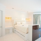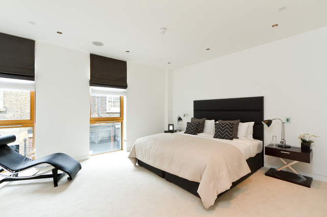 Exempel på ett modernt sovrum, med vita väggar — Houzz