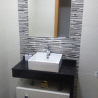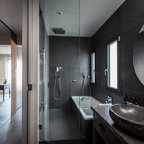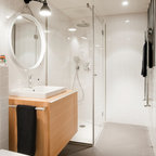Idéer för små funkis badrum med dusch, med grå kakel och keramikplattor — Houzz