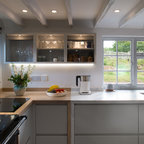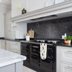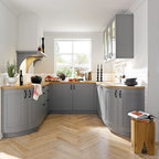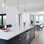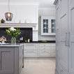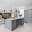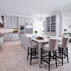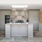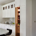 Inspiration för ett mycket stort lantligt skafferi, med släta luckor, grå skåp, granitbänkskiva och kalkstensgolv — Houzz
