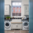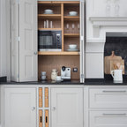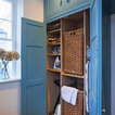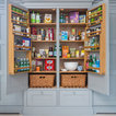 Double larder cupboard with drawers to the bottom. Bespoke hand-made cabinetry. Paint colours by Lewis Alderson