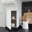 Maxa utrymmet i skafferiet Drömskafferiet stoltserar inte bara med förvaring på insidan av själva skåpet, utan även längs med dörrarna. Ett gäng uttänkta hyllor är den perfekta platsen för till exempel kryddor, som det alltid är bra att ha översikt över. Denna smarta lösning fungerar både i skafferier med en och två dörrar.