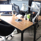 Dans un style indus’ revisitéÀ mi-chemin entre l’atelier de travail, voire de jardinage, et le bureau fait maison, cette table composée de tréteaux et d’un plateau est très originale ! La couleur vert sapin apprécie aussi les ambiances studieuses et artistiques. Elle est donc idéale dans un bureau ou une bibliothèque. Une idée à retenir pour mettre un peu de couleur tout en restant dans un style industriel.