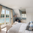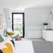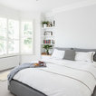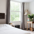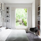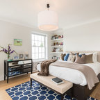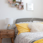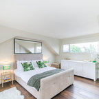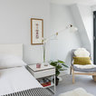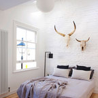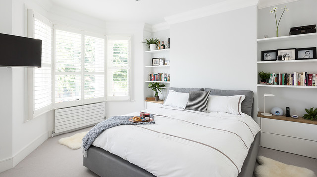Exempel på ett nordiskt sovrum, med vita väggar och heltäckningsmatta — Houzz