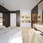 built in shelves in the walls. dislike all the white.