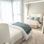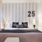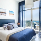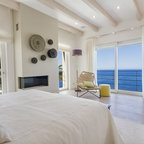 Exempel på ett mellanstort maritimt huvudsovrum, med vita väggar och ljust trägolv — Houzz