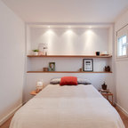 Inspiration för ett mellanstort minimalistiskt sovrum, med vita väggar — Houzz