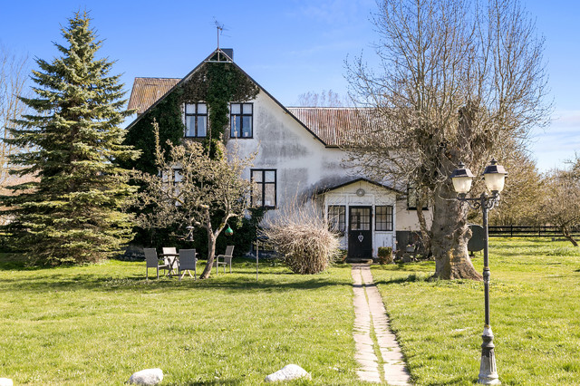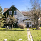Idéer för ett mellanstort shabby chic-inspirerat vitt hus, med två våningar — Houzz