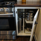 another idea for pots & pans instead of drawers, pull out shelves behind cupboard doors