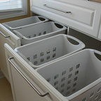 This is a great idea. Because the laundry room in the plan is so small, we could probably only do one of these but we could also do this in the master bathroom so we could switch the full basket to the laundry room and then take the empty one back to the master bath so we're never missing the hamper.