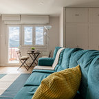 тут смотрим на окна - наша стена с двумя окнами, в гостиной, - можно вместо штор жалюзи сплошныком сделать