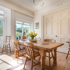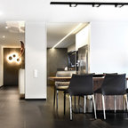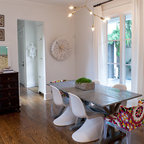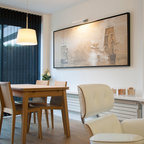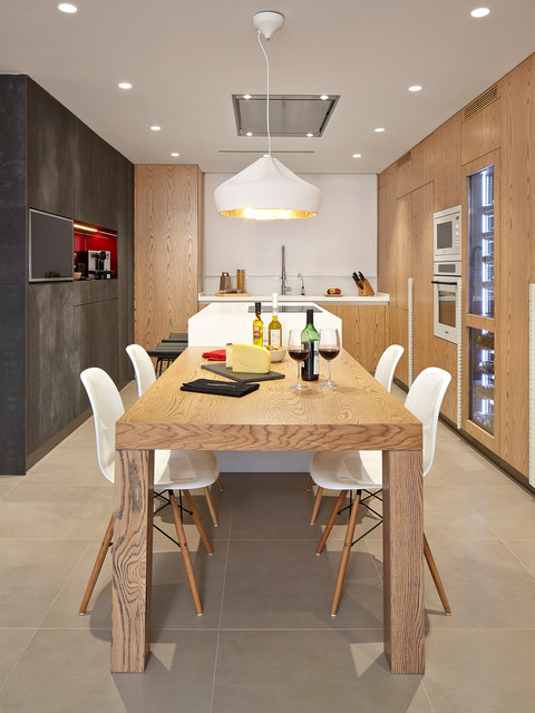 Idéer för att renovera ett mellanstort funkis kök med matplats, med vita väggar — Houzz
