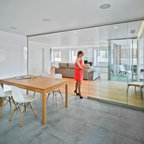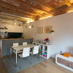 Idéer för mellanstora funkis kök med matplatser, med vita väggar — Houzz