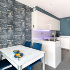 Idéer för att renovera ett mellanstort funkis kök med matplats — Houzz
