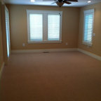 Klassisk inredning av ett huvudsovrum, med beige väggar och heltäckningsmatta — Houzz