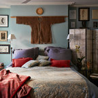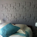 - I like how the pictures are hung over the headrest - I like the subtle, calming wall color