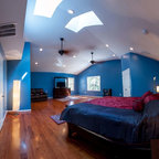 Inredning av ett modernt sovrum, med gröna väggar — Houzz