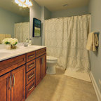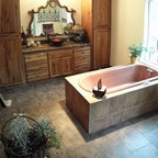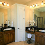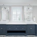 We utilized a Moroccan inspired mirror to accentuate and play with the unusual slanted roof line. By adding clean lines and ample drawers for storage, we were able to transform this outdated bathroom into a true modern master retreat.