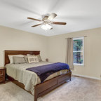 Idéer för att renovera ett stort vintage huvudsovrum, med grå väggar, heltäckningsmatta och grått golv — Houzz