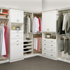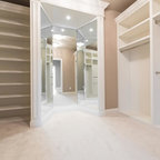 Bild på ett mellanstort vintage walk-in-closet, med skåp i shakerstil, vita skåp, heltäckningsmatta och grått golv — Houzz