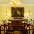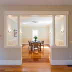Idéer för mellanstora vintage separata matplatser, med vita väggar, laminatgolv och brunt golv — Houzz