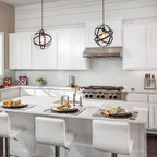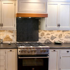 Inspiration för ett stort lantligt kök, med marmorbänkskiva, vitt stänkskydd, stänkskydd i keramik, betonggolv, skåp i shakerstil och turkosa skåp — Houzz