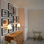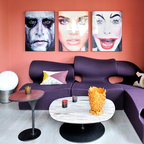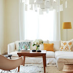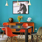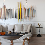 Inspiration för mellanstora eklektiska allrum med öppen planlösning, med ljust trägolv och flerfärgade väggar — Houzz