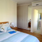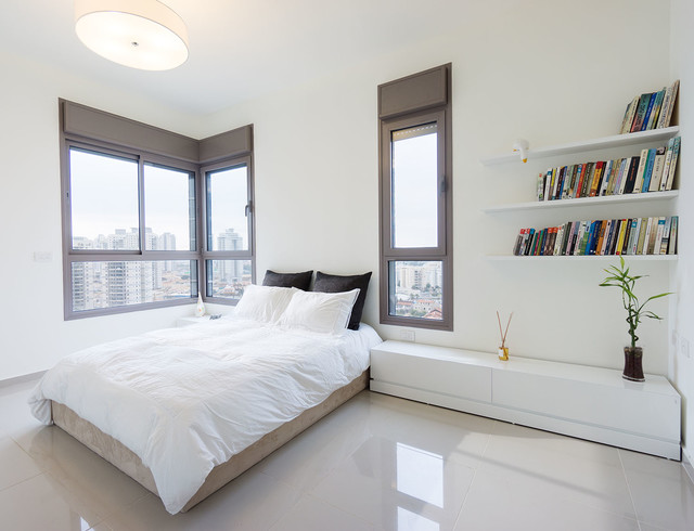 Inspiration för ett stort funkis huvudsovrum, med vita väggar — Houzz
