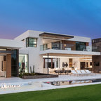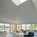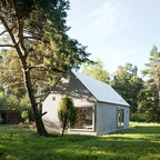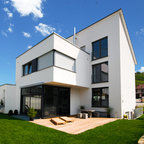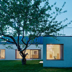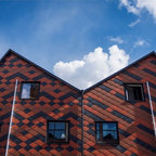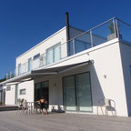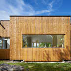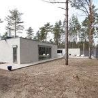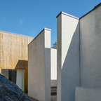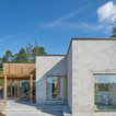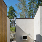 Även utvändigt går det bra att jobba med kontraster. Hård betong mot mjukt, naturligt trä ger detta hus ett spännande uttryck.
