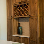 Pull out drawers create accessible storage solution in a tall pantry cabinet.