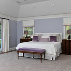 Idéer för ett klassiskt sovrum, med blå väggar och heltäckningsmatta — Houzz