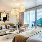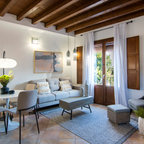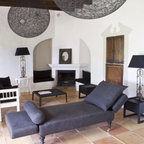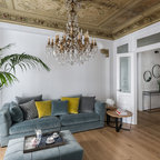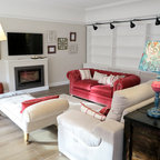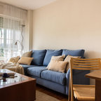 Bild på ett stort eklektiskt separat vardagsrum, med ett finrum, vita väggar och mellanmörkt trägolv — Houzz
