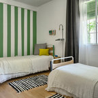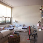 Foto på ett stort vintage flickrum kombinerat med sovrum och för 4-10-åringar, med beige väggar och ljust trägolv — Houzz