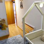 Idéer för att renovera ett mellanstort nordiskt flickrum kombinerat med sovrum och för 4-10-åringar, med beige väggar — Houzz