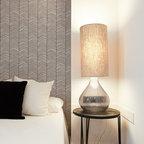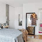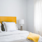 Diseño de cabecero lacado en blanco con iluminación led indirecta y lámparas de pared modelo Scantling, de Marset. Sobre el cabecero pared de madera. http://www.subeinteriorismo.com