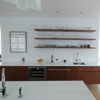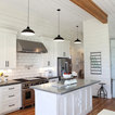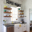 Wood floor black light fixture simple subway tile not a fan of the shelving or dark countertop