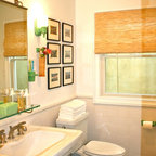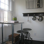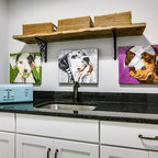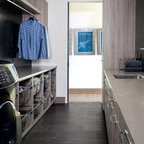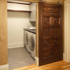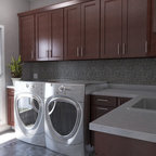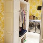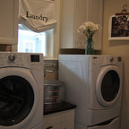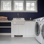 Exempel på en eklektisk tvättstuga enbart för tvätt, med en nedsänkt diskho och en tvättmaskin och torktumlare bredvid varandra — Houzz