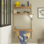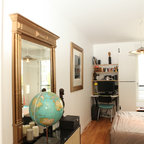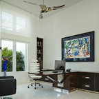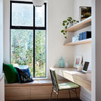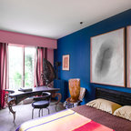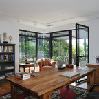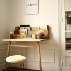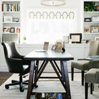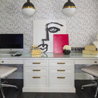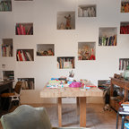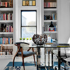 Exempel på ett stort eklektiskt hemmabibliotek, med ett fristående skrivbord — Houzz