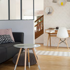 C’est dans un foisonnement arty que la sculpture en bronze Torse concave, de Robert Couturier, Galerie Downtown Pa- ris, trône en majesté sur la table de jeu entourée de ses quatre chaises Collection Ollo dessinées par Alessandro Mendini et Alessandro Guerriero pour Alchimia.