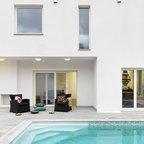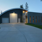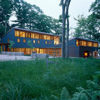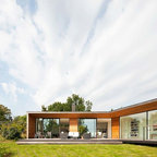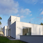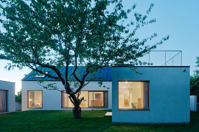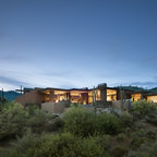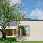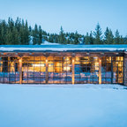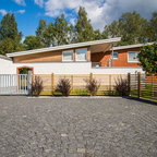Idéer för mycket stora funkis stenhus, med allt i ett plan — Houzz