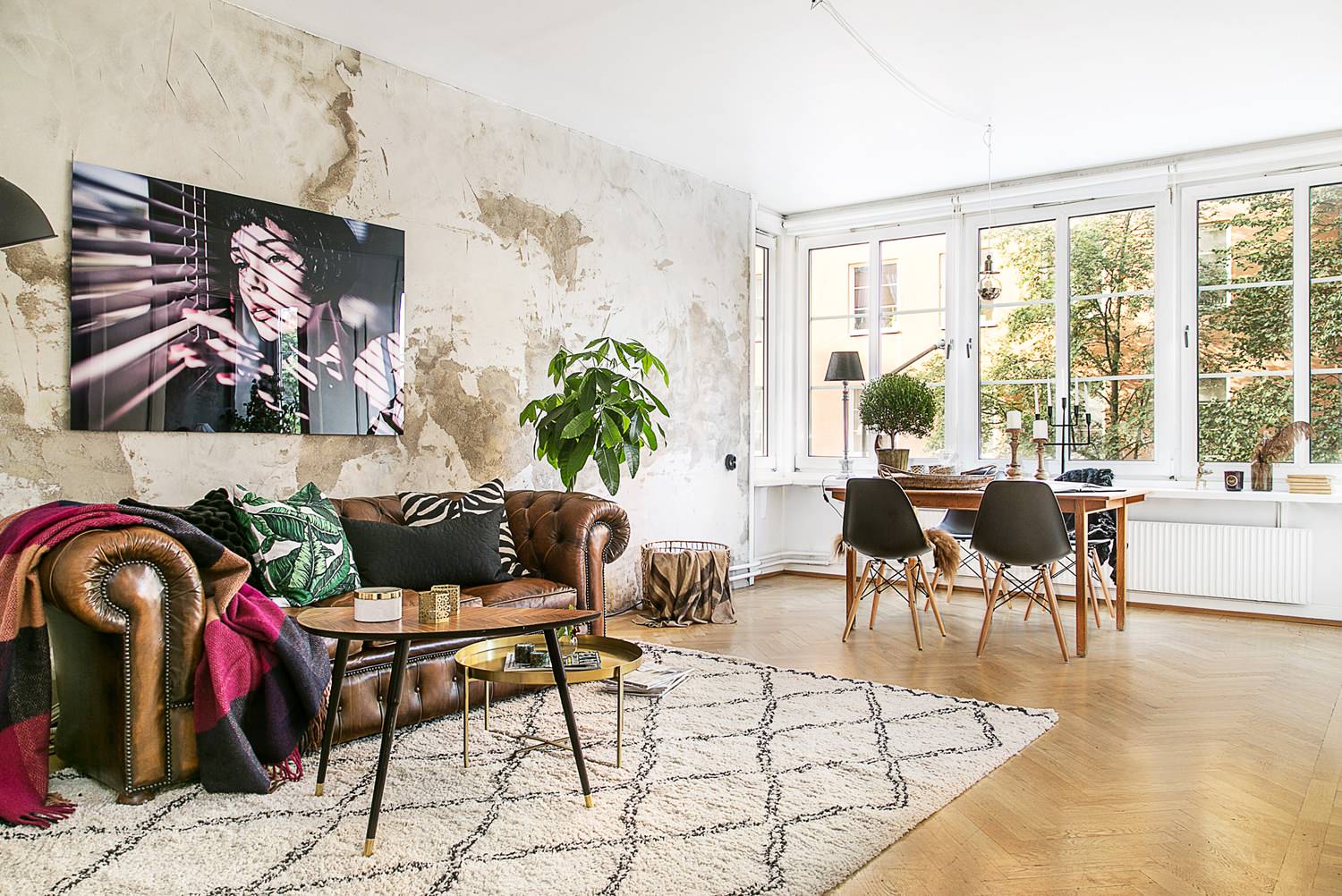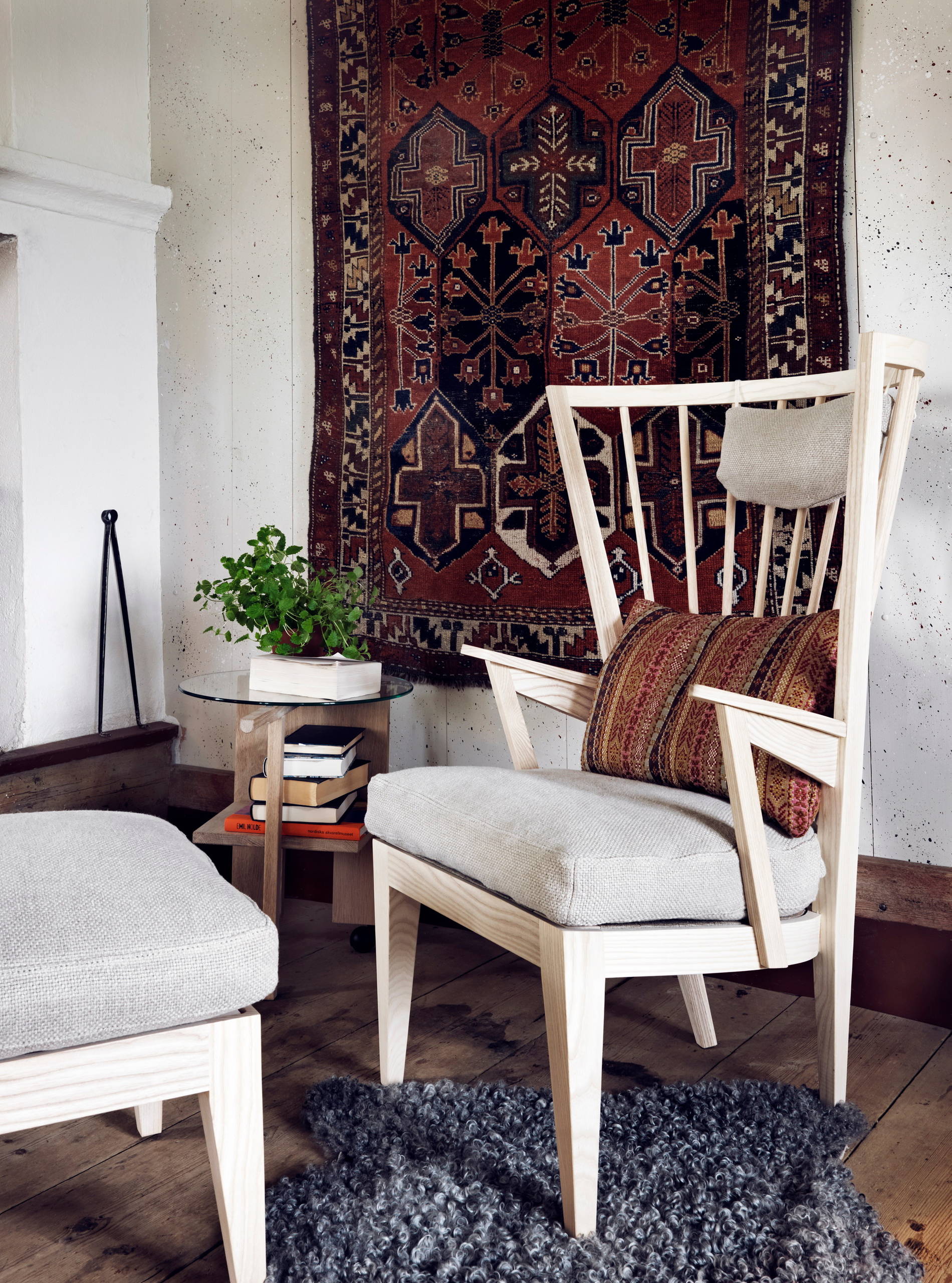 Mattan kan också vara tonsättande när det gäller färg och form. Blanda till exempel tapeter med organiska mönster med mattor i grafiska mönster!