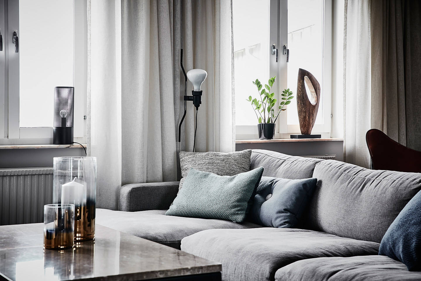 För dem utan småbarn, men som gärna umgås, är det både snyggt och praktiskt att möblera med två soffor mittemot varandra, eller kanske med soffa och dagbädd för ett stilrent intryck. Sammetstyger är trendigt just nu. Och snyggt!