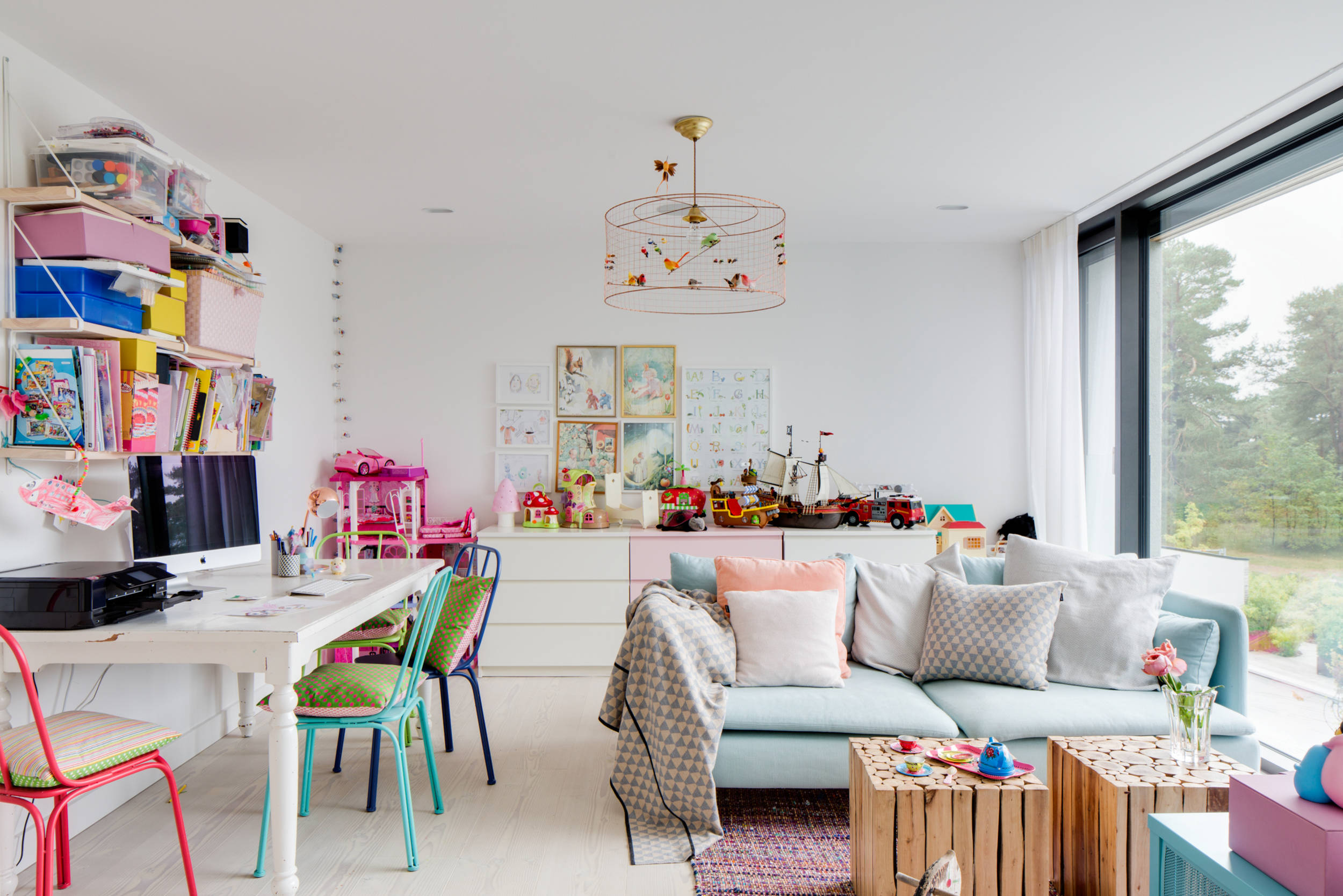 Att skapa en röd tråd med färg behöver inte innebära att det skall vara samma färg! Inred istället med färger i liknande nyanser – som pastelltonerna på bilden – och skapa en sammanhängande känsla.