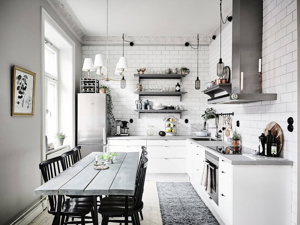 Bohemisk, skandinavisk eller industri? Vilken stil du än väljer så finns det stiltypiska möbler och detaljer som gör att estetiken hålls ihop. Köket på bilden visar upp en typiskt industriell inredning, och en tyglampa hade känts väldigt felplacerad över detta matbord.
