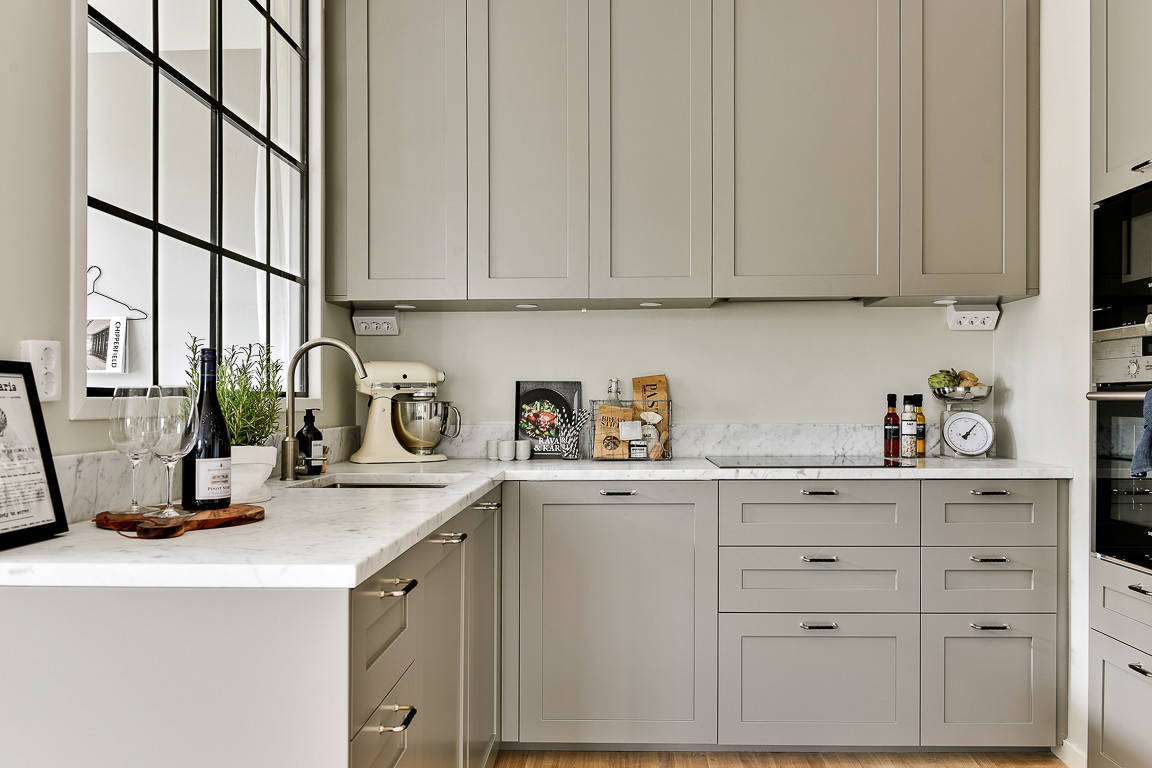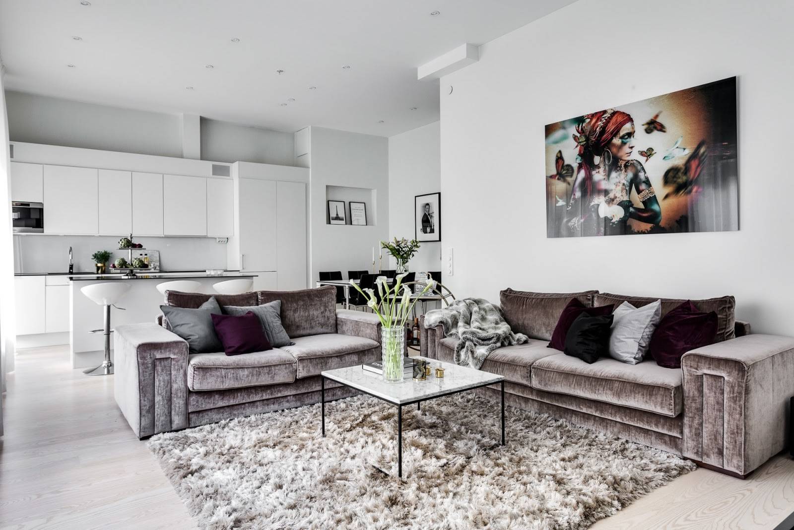 Det är helt enkelt svårt att hitta utrymme för flera rum om man bor mindre, säger Nicole. “Om man inte har möjlighet att smälla upp en hel vägg går det ändå att skilja av kök och vardagsrum med kanske en bardisk eller mer bänkyta. Den lösningen ger både förvaring och någonstans att sitta vid till exempel frukosten. Genom att öppna upp mindre lägenheter kan man få känslan av storhet, men med det kommer också matos och ljudnivå.”